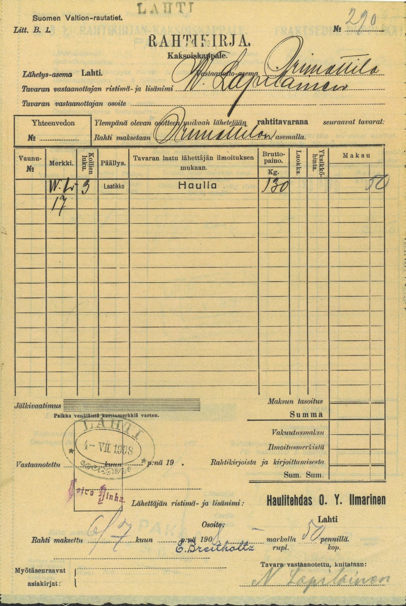 Haulitehdas Ilmarinen 1908